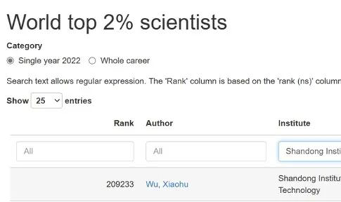 • 喜报!山东高等技术研究院吴小虎入选“全球前2%顶尖科学家榜单”!