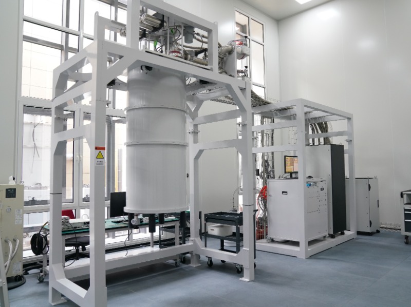稀释制冷平台利用脉冲管制冷机对 3He/4He 混合气进行预冷,再经过逐级节流和换热后,在接近绝对零度时出现分离相,浓相向稀相持续扩散过程会进一步降低温度,不断逼近绝对零度。该稀释制冷平台可实现最低 5 mK 的无负载制冷温度以及 900 μW@100 mK 的制冷量,可开展 3He/ 4He 混合液的热物理特性实验、固-固和固-液界面传热特性实验、卡皮查热阻测量实验等。